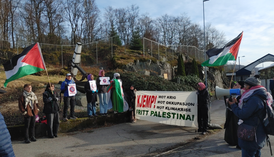 Bilde fra Bergen4Palestine #CloseBases demonstrasjon utenfor Håkonsvern krigsbase i Bergen, Norge – 23.02.2025